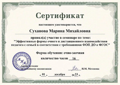 Наши педагоги приняли участие в семинаре по теме: «эффективные формы очного и дистанционного взаимодействия педагога с семьей в соответствии с требованиями ФОП ДО и ФГОС».Гордимся!
