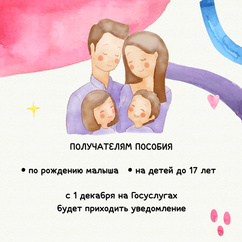 ☝️ Напомним, что пособия на детей получают семьи с невысокими доходами. С начала 2023 года все выплаты были объединены в единое пособие. При этом родители детей, которые родились до 31 декабря 2022 года включительно, могли выбрать: получать выплаты по старому принципу или оформить новое пособие. Получать выплаты по-старому можно до истечения срока назначения выплаты.